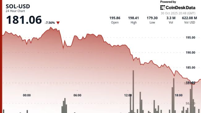 Home Altcoins Solana Tumbles 8%, Erasing All Year-Over-Year Gains as Spot ETF Debuts Fail to Boost Price Bitcoin (BTC) $ 66,615.00 Ethereum (ETH) $ 1,998.48 Tether (USDT) $ 0.999214 BNB (BNB) $ 611.92 XRP (XRP) $ 1.33 USDC (USDC) $ 0.999739 Solana (SOL) $ 82.47 TRON (TRX) $ 0.314794 Lido Staked Ether (STETH) $ 2,265.05 Figure Heloc (FIGR_HELOC) $ 1.02 Dogecoin (DOGE) $ 0.090849 USDS (USDS) $ 0.999605 WhiteBIT Coin (WBT) $ 51.52 Bitcoin Cash (BCH) $ 481.93 Hyperliquid (HYPE) $ 39.74 Wrapped stETH (WSTETH) $ 2,779.67 Cardano (ADA) $ 0.244571 LEO Token (LEO) $ 9.62 Wrapped Bitcoin (WBTC) $ 76,243.00 Monero (XMR) $ 329.11 Binance Bridged USDT (BNB Smart Chain) (BSC-USD) $ 0.998762 Chainlink (LINK) $ 8.51 Wrapped Beacon ETH (WBETH) $ 2,466.93 Canton (CC) $ 0.155400 Ethena USDe (USDE) $ 0.998850 Stellar (XLM) $ 0.168441 Wrapped eETH (WEETH) $ 2,465.31 USD1 (USD1) $ 0.999676 Dai (DAI) $ 1.00 sUSDS (SUSDS) $ 1.08 Litecoin (LTC) $ 54.03 Hedera (HBAR) $ 0.089706 MemeCore (M) $ 2.22 Coinbase Wrapped BTC (CBBTC) $ 76,366.00 PayPal USD (PYUSD) $ 0.999637 Rain (RAIN) $ 0.008070 Avalanche (AVAX) $ 8.75 WETH (WETH) $ 2,268.37 Zcash (ZEC) $ 217.10 Shiba Inu (SHIB) $ 0.000006 Sui (SUI) $ 0.866190 USDT0 (USDT0) $ 0.998824 Bittensor (TAO) $ 322.23 Toncoin (TON) $ 1.24 Cronos (CRO) $ 0.071371 World Liberty Financial (WLFI) $ 0.097714 Circle USYC (USYC) $ 1.12 Tether Gold (XAUT) $ 4,485.19 PAX Gold (PAXG) $ 4,493.38 Ethena Staked USDe (SUSDE) $ 1.22 Mantle (MNT) $ 0.674225 BlackRock USD Institutional Digital Liquidity Fund (BUIDL) $ 1.00 Uniswap (UNI) $ 3.39 Polkadot (DOT) $ 1.26 Pi Network (PI) $ 0.181392 Global Dollar (USDG) $ 0.999613 OKB (OKB) $ 84.68 Falcon USD (USDF) $ 0.997421 Aster (ASTER) $ 0.660659 Sky (SKY) $ 0.070096 HTX DAO (HTX) $ 0.000002 syrupUSDC (SYRUPUSDC) $ 1.15 NEAR Protocol (NEAR) $ 1.17 Aave (AAVE) $ 97.04 Ripple USD (RLUSD) $ 0.999883 Pepe (PEPE) $ 0.000003 Bitget Token (BGB) $ 1.94 BFUSD (BFUSD) $ 0.999300 Ondo US Dollar Yield (USDY) $ 1.13 Ondo (ONDO) $ 0.269529 Ethereum Classic (ETC) $ 8.03 Internet Computer (ICP) $ 2.23 Siren (SIREN) $ 1.59 Gate (GT) $ 6.55 Janus Henderson Anemoy Treasury Fund (JTRSY) $ 1.10 KuCoin (KCS) $ 7.94 Quant (QNT) $ 70.15 Jupiter Perpetuals Liquidity Provider Token (JLP) $ 4.00 Pump.fun (PUMP) $ 0.001715 POL (ex-MATIC) (POL) $ 0.092191 Kaspa (KAS) $ 0.035265 Spiko EU T-Bills Money Market Fund (EUTBL) $ 1.21 NEXO (NEXO) $ 0.887518 Jito Staked SOL (JITOSOL) $ 124.46 USDtb (USDTB) $ 0.999454 Render (RENDER) $ 1.68 Kelp DAO Restaked ETH (RSETH) $ 2,404.69 Worldcoin (WLD) $ 0.273446 Midnight (NIGHT) $ 0.050329 Binance-Peg WETH (WETH) $ 2,262.26 Cosmos Hub (ATOM) $ 1.66 Rocket Pool ETH (RETH) $ 2,631.35 Morpho (MORPHO) $ 1.49 USDD (USDD) $ 0.999184 Binance Bridged USDC (BNB Smart Chain) (USDC) $ 0.999945 Ethena (ENA) $ 0.090645 Superstate Short Duration U.S. Government Securities Fund (USTB) (USTB) $ 11.03 Wrapped BNB (WBNB) $ 759.61 Aptos (APT) $ 0.932325 Function FBTC (FBTC) $ 76,389.00 Algorand (ALGO) $ 0.081929 Official Trump (TRUMP) $ 2.96 Flare (FLR) $ 0.007793 OUSG (OUSG) $ 114.73 Filecoin (FIL) $ 0.808282 syrupUSDT (SYRUPUSDT) $ 1.11 XDC Network (XDC) $ 0.030697 Beldex (BDX) $ 0.080250 YLDS (YLDS) $ 0.999824 Binance Staked SOL (BNSOL) $ 108.24 Provenance Blockchain (HASH) $ 0.010525 GHO (GHO) $ 0.998870 VeChain (VET) $ 0.006649 Usual USD (USD0) $ 0.998818 Artificial Superintelligence Alliance (FET) $ 0.245085 NEW X CEO IS BACK (XFLOKI) $ 0.506041 Arbitrum (ARB) $ 0.089859 Polygon Bridged USDC (Polygon PoS) (USDC.E) $ 0.999720 Stable (STABLE) $ 0.025326 Solv Protocol BTC (SOLVBTC) $ 76,461.00 JUST (JST) $ 0.060470 Lombard Staked BTC (LBTC) $ 76,491.00 Jupiter (JUP) $ 0.144440 Bonk (BONK) $ 0.000006 LayerZero (ZRO) $ 2.01 clBTC (CLBTC) $ 76,920.00 TrueUSD (TUSD) $ 0.997964 A7A5 (A7A5) $ 0.012291 Fasttoken (FTN) $ 1.09 PancakeSwap (CAKE) $ 1.37 Virtuals Protocol (VIRTUAL) $ 0.658655 EURC (EURC) $ 1.15 StakeWise Staked ETH (OSETH) $ 2,419.84 Chiliz (CHZ) $ 0.040080 Dash (DASH) $ 32.10 Kinetiq Staked HYPE (KHYPE) $ 33.97 tBTC (TBTC) $ 70,942.00 Stacks (STX) $ 0.218940 Pudgy Penguins (PENGU) $ 0.006393 WrappedM by M0 (WM) $ 1.00 First Digital USD (FDUSD) $ 0.999696 Janus Henderson Anemoy AAA CLO Fund (JAAA) $ 1.03 Kinesis Gold (KAU) $ 155.72 Tezos (XTZ) $ 0.342519 Ether.fi (ETHFI) $ 0.463516 c8ntinuum (CTM) $ 0.087592 Decred (DCR) $ 20.98 PRIME (PRIME) $ 1.03 Mantle Staked Ether (METH) $ 2,455.82 Sei (SEI) $ 0.053771 USX (USX) $ 0.999634 Polygon PoS Bridged DAI (Polygon POS) (DAI) $ 0.999983 DeXe (DEXE) $ 7.13 Resolv wstUSR (WSTUSR) $ 1.13 Sun Token (SUN) $ 0.017098 COCA (COCA) $ 1.30 AINFT (NFT) $ 0.00000033 ADI (ADI) $ 4.04 Doge Strategy (DOGESTR) $ 0.288297 Curve DAO (CRV) $ 0.211888 Liquid Staked ETH (LSETH) $ 2,406.26 Gnosis (GNO) $ 118.60 Arbitrum Bridged WBTC (Arbitrum One) (WBTC) $ 76,200.00 BitTorrent (BTT) $ 0.00000032 USDai (USDAI) $ 0.999601 Aerodrome Finance (AERO) $ 0.324908 Conflux (CFX) $ 0.056635 Wrapped Flare (WFLR) $ 0.009961 Kite (KITE) $ 0.161000 Injective (INJ) $ 2.83 L2 Standard Bridged WETH (Base) (WETH) $ 2,266.86 River (RIVER) $ 14.38 Steakhouse USDC Morpho Vault (STEAKUSDC) $ 1.12 Bitcoin SV (BSV) $ 13.73 Legacy Frax Dollar (FRAX) $ 0.999954 Kaia (KAIA) $ 0.046222 FLOKI (FLOKI) $ 0.000028 JasmyCoin (JASMY) $ 0.005355 Binance-Peg XRP (XRP) $ 1.59 Celestia (TIA) $ 0.293853 Ether.Fi Liquid ETH (LIQUIDETH) $ 2,443.47 crvUSD (CRVUSD) $ 0.999342 Renzo Restaked ETH (EZETH) $ 2,421.84 Official FO (FO) $ 0.263130 Noon (NOON) $ 0.751949 Lido DAO (LDO) $ 0.306398 sBTC (SBTC) $ 77,039.00 Kinesis Silver (KAG) $ 68.79 Venice Token (VVV) $ 5.78 The Graph (GRT) $ 0.023611 Jupiter Staked SOL (JUPSOL) $ 115.56 SPX6900 (SPX) $ 0.272720 Savings USDD (SUSDD) $ 1.03 Monad (MON) $ 0.022916 Ape and Pepe (APEPE) $ 0.000001 Olympus (OHM) $ 15.41 Marinade Staked SOL (MSOL) $ 133.18 DoubleZero (2Z) $ 0.069266 Arbitrum Bridged WETH (Arbitrum One) (WETH) $ 2,265.06 IOTA (IOTA) $ 0.055153