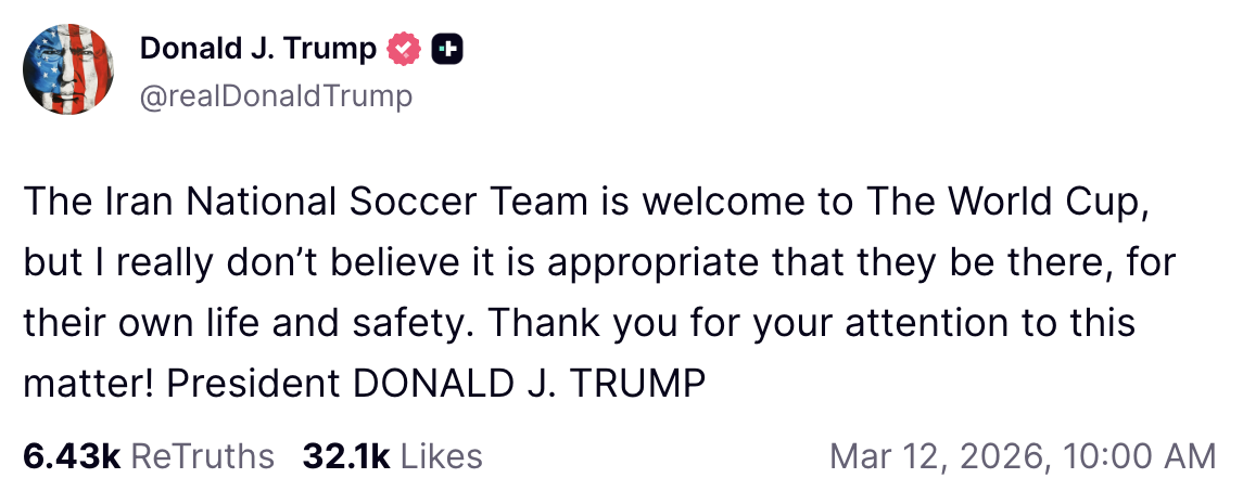 This was followed by a thinly-veiled threat to the Iranian National Soccer Team.